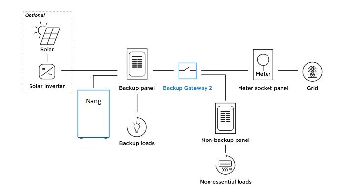 A non-backup system is designed to store energy from the grid or solar, but does not operate during a grid outage.
